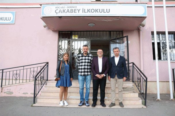 Okulların fiziki koşullarının iyileştirilmesi ve çevre düzenlemesi çalışmalarını titizlikle sürdüren Derince Belediyesi, uygulamalarıyla öğrencilerin daha mutlu ve huzurlu bir ortamda eğitim görmelerini hedefliyor. Derince Belediye Başkanı Av. Sertif Gökçe de sık sık ilçedeki eğitim kurumlarını ziyaret ederek okul idarecileri, öğretmenler, okul aile birliği yöneticileri ve öğrencilerle bir araya geliyor. Derince Belediye Başkanı Av. Sertif Gökçe bu kapsamda son olarak Mersincik Mahallesi’nde yer alan Çakabey İlkokulu’na bir ziyaret gerçekleştirdi.