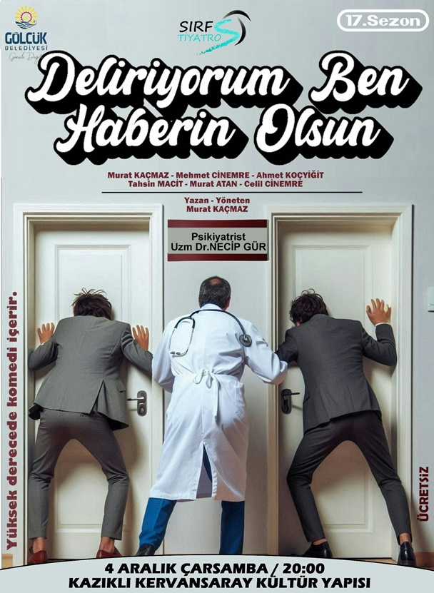 Gölcük Belediyesi kültür-sanat etkinlikleri kapsamında tiyatroseverleri Kervansaray’da buluşturmaya devam ediyor. Etkinlikler kapsamında “Deliriyorum Ben Haberin Olsun” adlı yetişkin komedi oyunu; 4 Aralık Çarşamba günü Kazıklı Kervansarayı Kültür Yapısı’nda ücretsiz olarak seyircisi ile buluşacak.