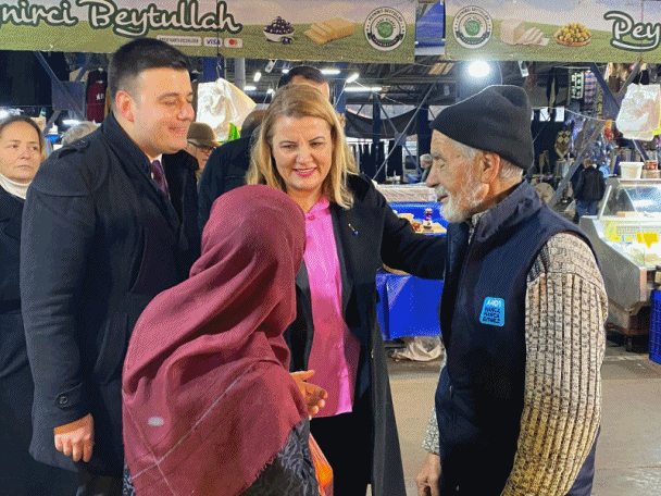 İzmit Belediye Başkanı Fatma Kaplan Hürriyet, Kandıralı hemşerilerini ziyaret etti. Başkan Hürriyet, CHP Kandıra İlçe Başkanı Gürcan Yalçıntuğ, Kandıra Belediyesi Meclis Üyeleri Sabahattin Güngör ve Zeliha Yalçıntuğ, İzmit Belediyesi Meclis Üyeleri Cengiz Özcan, Gamze Yılmaz Doğan ve Muhammet Ertürk ile birlikte kapalı pazar alanındaki pazarcı esnafı ve vatandaşlarla bir araya gelerek dertlerini ve sorunları dinledi.