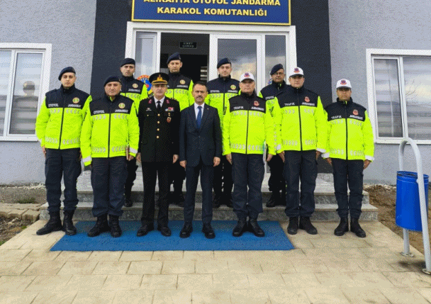 İl Jandarma Komutanı J. Alb. Murat Bozkurt ile birlikte Alikahya Otoyol Jandarma Karakol Komutanlığını ziyaret eden Vali İlhami Aktaş, Askeri Manga ile karşılandı.
