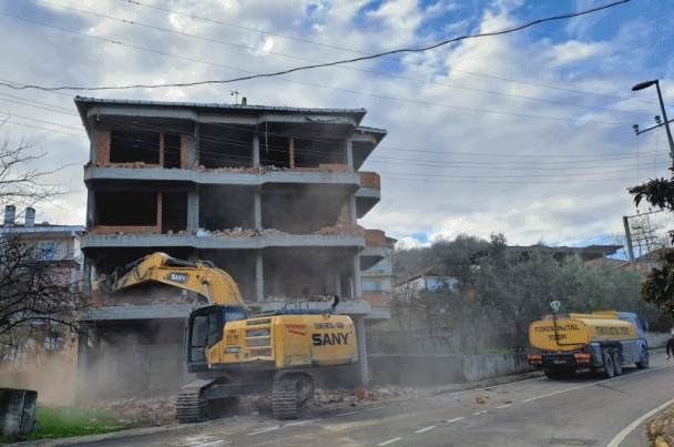Gölcük Belediyesi ilçede onarım ve güçlendirmesi yapılmayan orta hasarlı binalar ile vatandaşların can güvenliğini tehdit eden, sosyal riskler oluşturan metruk binaların yıkımına devam ediyor. Çalışmalar kapsamında Hisareyn merkezde bulunan, performans analizi sonucu depreme dayanıksız olduğu belirlenen metruk yapının yıkımını gerçekleştirerek enkaz kaldırma çalışmalarını tamamladı.