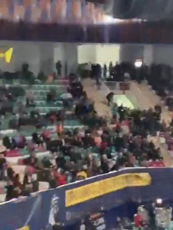 Erdoğan kürsüde konuşma yaptığı sırada salonun önemli bir bölümü dışarıya çıktı. Boş tribünler kameralara yansıdı.