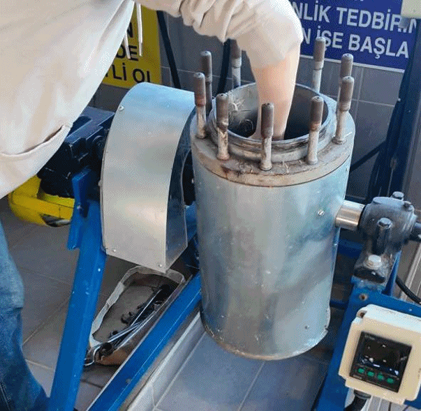 Kenevir liflerinin kesilerek pişirmeye hazır hale getirildiği ve kimyasal pişirme işleminin laboratuvar ortamında gerçekleştirildiği asitsiz kenevir hamuru üç kez kesme işlemine tabi tutuluyor.