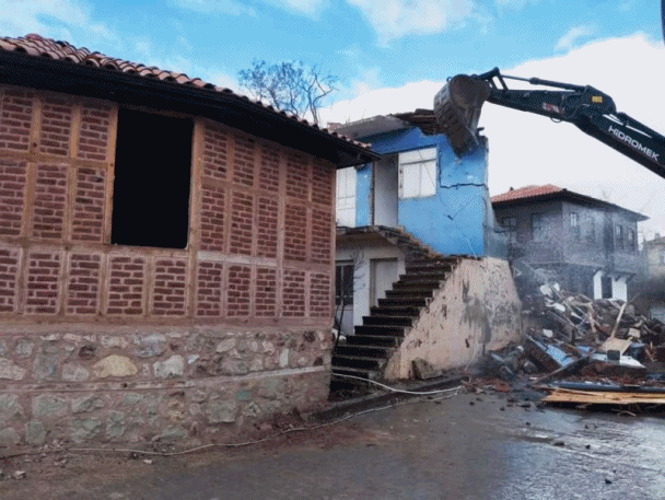 Tarihi Hamam’ın yanında yer alan ve yapı güvenliği açısından risk teşkil eden bina, kontrollü bir şekilde yıkıldı. Böylece bölgenin tarihi dokusuna zarar verebilecek bir unsur ortadan kaldırıldı. Bu adım, restorasyon sürecinin daha sağlıklı ilerlemesine olanak sağlayacak.