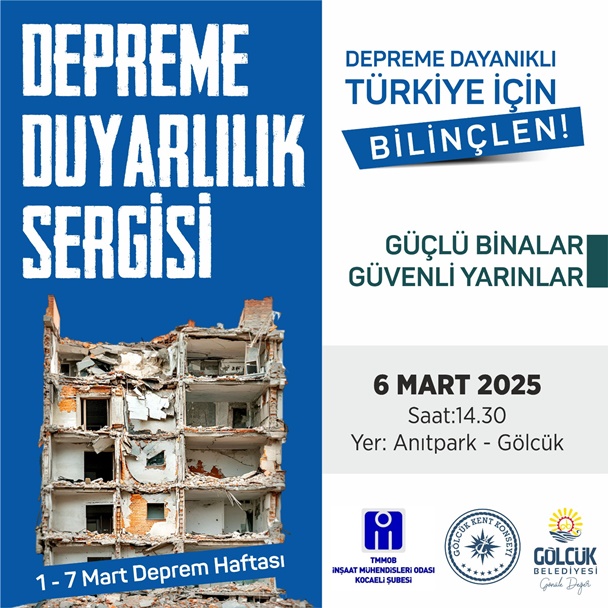 Gölcük Belediyesi; toplumun deprem duyarlılığını arttırmak hedefiyle anlamlı bir etkinliğe imza atacak. Deprem Haftası kapsamında düzenlenecek etkinlik kapsamında Gölcük Belediyesi tarafından; 6 Mart Perşembe günü saat 14.30’da, Anıtpark’ta, “Depreme Duyarlılık Sergisi” açılacak. TMMOB İnşaat Mühendisleri Odası Kocaeli Şubesi ve Gölcük Kent Konseyi iş birliğinde düzenlenecek olan sergide, ziyaretçilere güvenli binalar konusunda bilgiler verilecek.