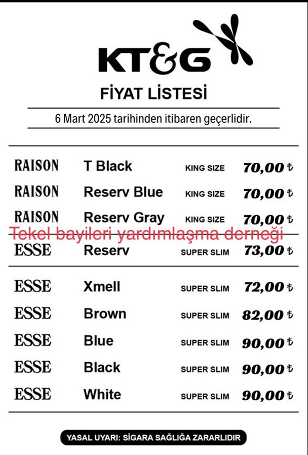 Tekel Bayileri Yardımlaşma Derneği Başkanı Erol Dündar, sosyal medya hesabından yaptığı açıklamada, Esse sigara grubuna 8 TL zam yapıldığını duyurdu.
