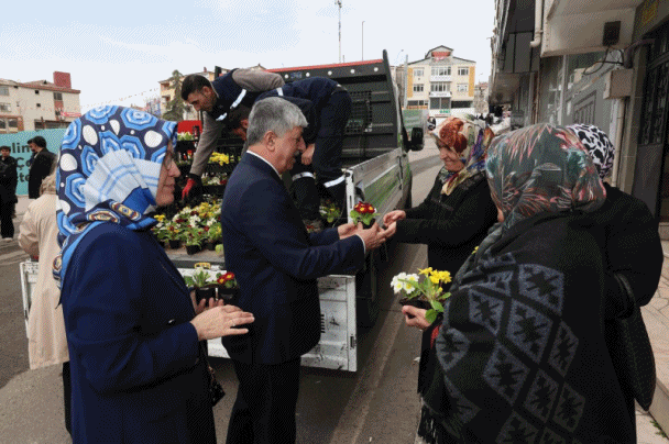 Başkan Ömeroğlu’ndan esnaf ve kadınlara çiçek