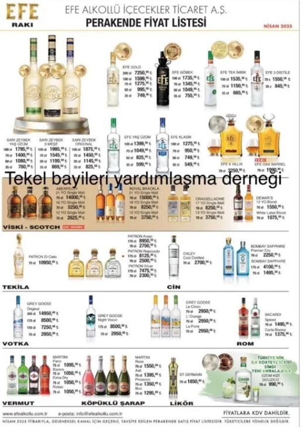 Söz konusu rakı grubunun en ucuz 100'lük rakısının ise 1275 TL'ye satılmaya başlandığı ifade edildi. Öte yandan, 35'lik rakıların fiyatları da 549 TL'den başlayıp 780 TL'ye kadar çıkıyor.