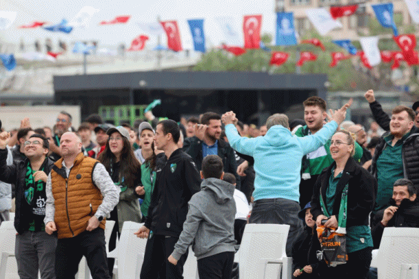 İzmit Kent Meydanı, Kocaelispor’un 2-2 berabere kaldığı karşılaşma öncesinde yeşil-siyah renklere büründü. Karşılaşma boyunca alanda büyük heyecan hakimdi. Formasını giyen, bayrağını alan Kocaelispor taraftarları, takımlarına olan sevgilerini meydanda bir kez daha gösterdi. Kocaeli halkı maç boyunca takımlarına büyük destek verirken, şampiyonluk yolundaki bu önemli karşılaşma heyecan içinde takip edildi.