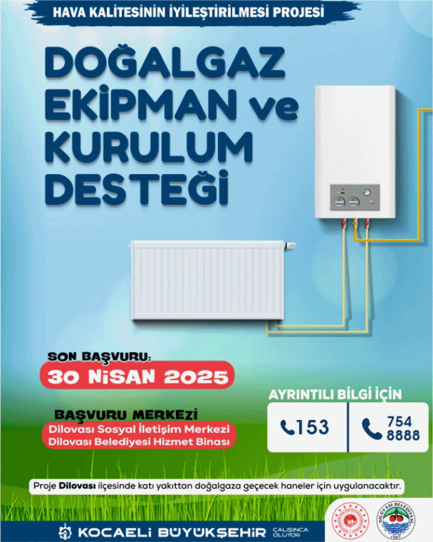 Vatandaşların daha sağlıklı ve daha temiz bir çevrede yaşamalarını hedefleyen proje ile kömür tüketiminin azaltılması, hava kirliliğinin önlenmesi ve karbon salınımının düşürülmesi amaçlanıyor. Kampanyadan yararlanmak isteyen vatandaşların başvurularını 30 Nisan 2025 tarihine kadar Dilovası Sosyal İletişim Merkezi veya Dilovası Belediyesi Hizmet Binasına yapmaları gerekiyor.