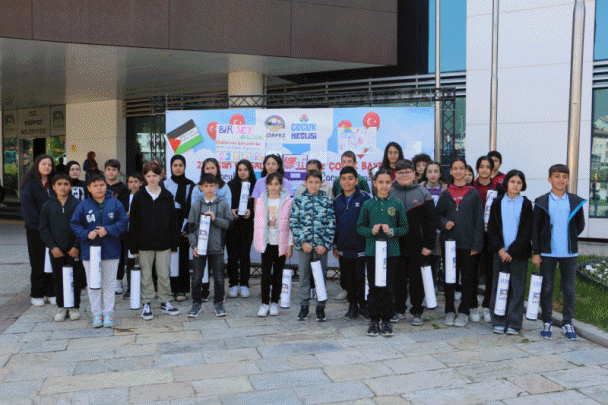 Herkesin doğuştan yaşam hakkına sahip olduğunu söyleyen Meclis Başkanı Buğlem Çağıl, “Yaşam hakkı herkesindir. Bizler Körfez Belediyesi Çocuk Meclisi olarak Filistin’de yapılan katliamı kınıyoruz. Bizler artık şiddetin son bulduğu, her bir çocuğun ve insanın eşit haklar temelinde haklarından yararlandığı bir dünya istiyoruz” dedi. Meclis bitiminde çocuklar bayrak ve pankartlar açarak, Filistin bayrağı rengindeki balonları gökyüzüne uçurdular.