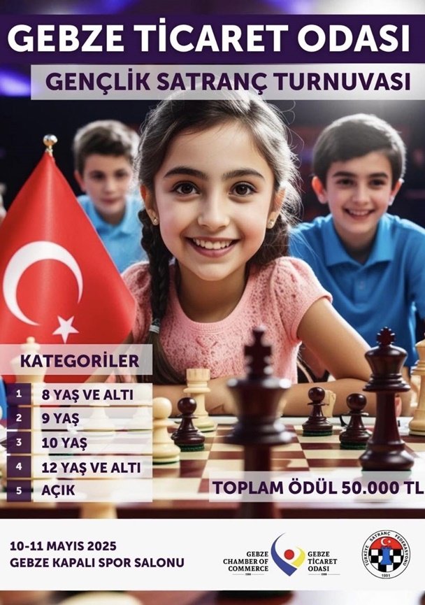 İş Dünyası, 06 Mayıs 2025 11:09Gebze Ticaret Odası - Gebze Gençlik ve Spor İlçe Müdürlüğü büyük bir satranç turnuvası düzenliyor! 10-11 Mayıs 2025 tarihlerinde Gebze Kapalı Spor Salonu'nda gerçekleşecek olan bu büyük organizasyon, Türkiye Satranç Federasyonu Kocaeli İl Temsilciliği ile birlikte organize ediliyor.