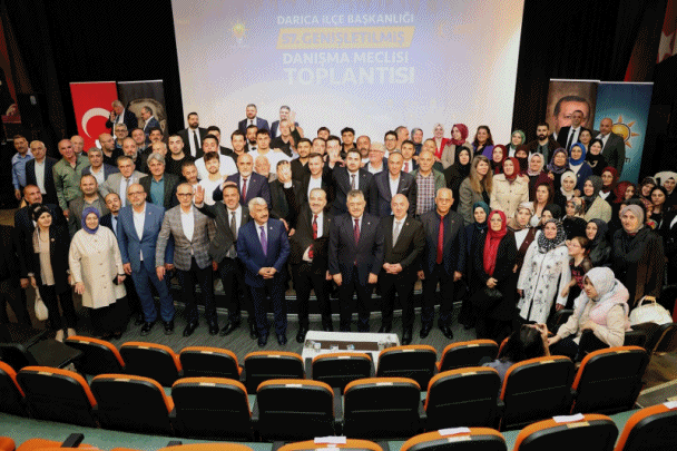 AK Parti Darıca İlçe Başkanlığı 57. Genişletilmiş Danışma Meclisi toplantısı, yoğun katılımla gerçekleşti. Adnan Menderes Kültür Merkezi’nde gerçekleştirilen toplantıya; AK Parti MKYK üyesi ve milletvekili Prof. Dr. Sadettin Hülagü, AK Parti Kocaeli Milletvekilleri Veysel Tipioğlu, Cemil Yaman, Sami Çakır, Kocaeli Büyükşehir Başkanvekili Hasan Soba, Darıca Belediye Başkanı Muzaffer Bıyık, AK Parti Kocaeli İl Başkanı Şahin Talus, AK Parti Darıca İlçe Başkanı Köksal Şakar, önceki dönem il başkanları, önceki dönem belediye başkanları, Cumhur İttifakı ortağı il ve ilçe başkanları ve çok sayıda partili katıldı. Divan heyeti; Divan Başkanı Ersin Erik, Divan üyeleri, Burak Emre Doğan, Enes Duman, Sudiye Er oldu. Danışma meclisi toplantısı, Kur’an-ı Kerim Tilaveti ile başladı. Kur’an-ı Kerim Tilavetinin ardından AK Parti Darıca İlçe Başkanlığı’nın ve Darıca Belediyesi’nin hazırladığı video gösterimi katılımcılara izletildi. Divan Başkanı Ersin Erik’in danışma meclisi toplantı gündemini sunmasının ardından ilk olarak kürsüye konuşmak üzere AK Parti Darıca İlçe Başkanı Köksal Şakar çıktı.