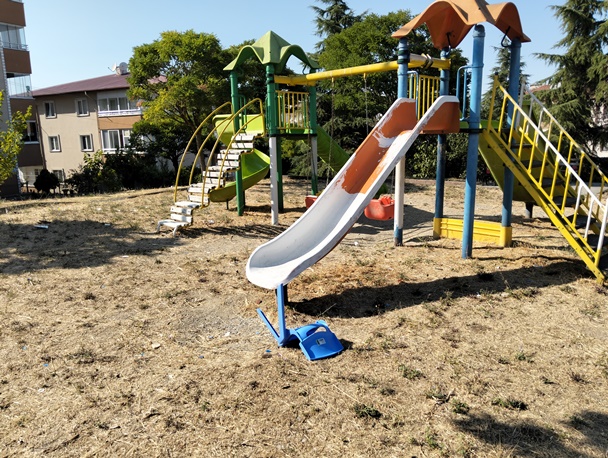 Gölcük Atatürk Mahallesi Harmantarla Caddesi üzerinde bulunan parkın durumu içler acısı. Uzun süredir bakım ve temizliği yapılmadığı görülen çocuk parkında peyzaj için seçilen dikenli bitkiler de çocuklar için tehlike yaratıyor.