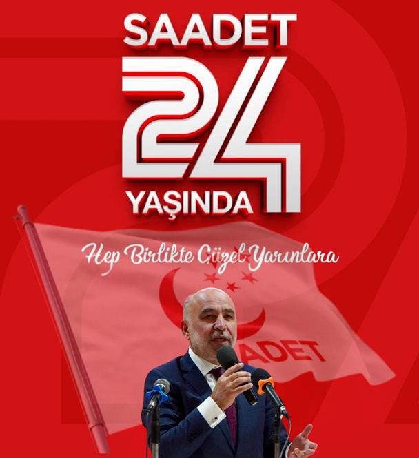 “2001 yılında kurulan Saadet Partisi, Milli Görüş’ün tek temsilcisi olarak 24 yıldır eğilmeden bükülmeden, devlet yardımı almadan yoluna emin adımlarla devam ediyor. Bizler bu yolun takipçileri olarak Erbakan Hocamızın açtığı yolda azim ve kararlılıkla hedeflerimize teşkilatlarımızla yürümeye devam ediyoruz. Ve Türkiye’nin tek birleştirici gücü olan Saadet Partisi için nice 24 yıllar görmesini temenni ediyorum.”