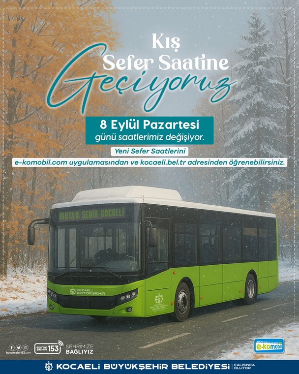 Kocaeli Büyükşehir Belediyesi, 2025-2026 eğitim ve öğretim yılının başlamasıyla birlikte 8 Eylül Pazartesi günü (yarın) kış sefer saatlerine geçiyor. Otobüs ve tramvay hatlarının sefer saatleri yeniden düzenlenerek, hem öğrencilerin hem de vatandaşların daha konforlu ve güvenli bir ulaşım hizmeti alması amaçlanıyor.