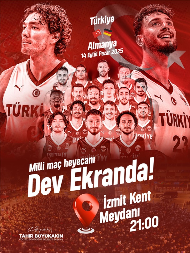 Gündem, 13 Eylul 2025 11:17A Milli Basketbol Takımımızın Avrupa Şampiyonası coşkusu, Kocaeli’de Büyükşehir Belediyesi’nin organizasyonluğunda yaşanıyor. Büyükşehir, yarı final mücadelesinde olduğu gibi Almanya ile oynanacak final karşılaşmasını da 14 Eylül Pazar (yarın) günü saat 21.00’de İzmit Kent Meydanı’nda kuracağı dev ekranda canlı olarak yayınlayacak.
