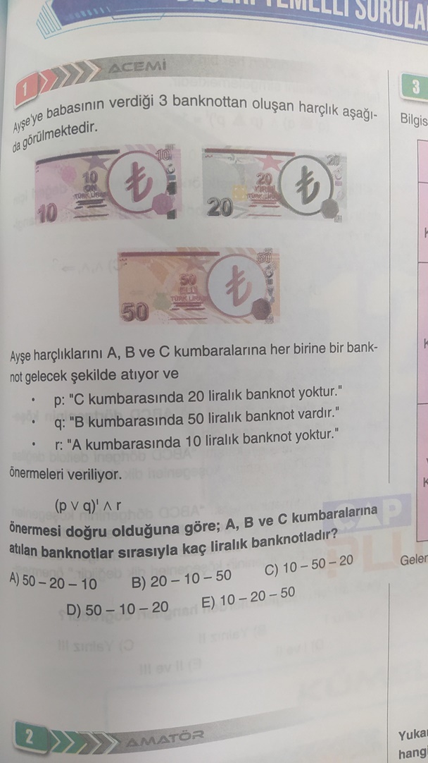 Gündem, 20 Eylul 2025 11:17Türkiye’de bir yayınevinin matematik soru bankasında çıkan soruda TL banknotlarında Atatürk resmi kapatıldı. Bu skandala ise sosyal medya üzerinden büyük tepki geldi.