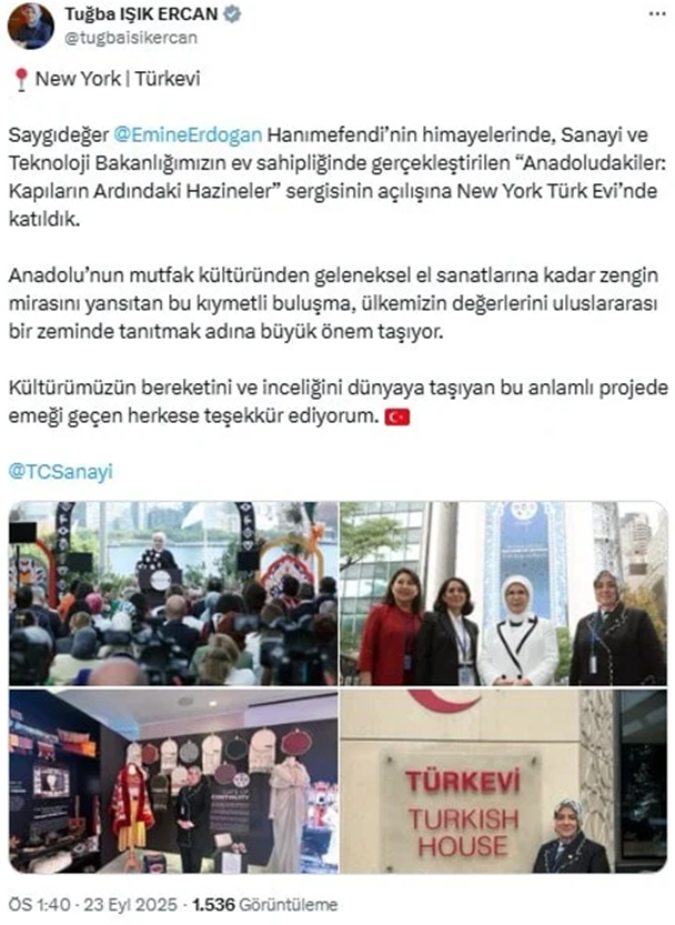 AKP Kadın Kolları Başkanı Tuğba Işık Ercan da New York’a giden isimler arasında yer aldı. Ercan, Emine Erdoğan’ın da katıldığı, Aile ve Sosyal Hizmetler Bakanlığı tarafından düzenlenen bir programa dair görüntüleri sosyal medya hesabından paylaştı.