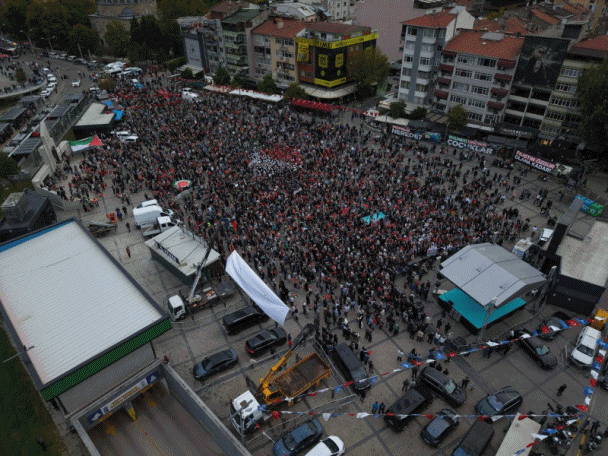 Merkez Bankası önünden İzmit Kent Meydanı’na doğru yapılan yürüyüş sonrası düzenlenen mitingde; Gazze, Filistin halkı ve SUMUD Filosuna destek için edilen dualar ve yapılan Kur’an-ı Kerim Tilaveti sonrası video gösterimleri gerçekleşti. Kocaeli Ali Fuat Başgil Sosyal Bilimler Lisesi öğrencisi Özkan Işıksoy tarafından da bildiri okunmasının ardından SUMUD Filosuna video konferans sistemi ile canlı bağlantı yapılarak filo ekibine destek ve teşekkür mesajları iletildi. Enes Güler tarafından yapılan duanın ardından, program konserle sona erdi.