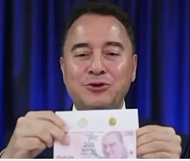Babacan, 200 TL ve iki çeyrek altın göstererek "200 TL, tedavüle ilk çıktığında 134 dolar ediyordu şimdi 5 dolar etmiyor. Hani para pul oldu derler ya 5 dolar etmiyor. Çeyrek altın olmuş 9 bin 500 TL. Şu anda en düşük emekli aylığı ile 2 çeyrek altını alamıyorsunuz. Bu 200 TL ilk tedavüle çıktığında bu 200 TL ile 3 çeyrek altın alabiliyordunuz. Şu anda böyle bir şey mümkün mü ? Asgari ücret 22 bin TL, şu iki metal parçası 19 bin TL. Memleketi getirdikleri durum bu" diye konuştu.