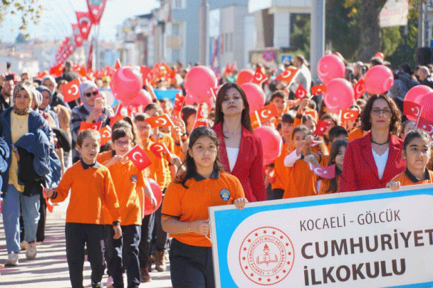 7’den 70’e her yaş gurubundan yüzlerce kişi, ellerinde bayraklarıyla süsledikleri Mareşal Fevzi Çakmak Caddesi’ndeki tören saygı duruşu ve İstiklal Marşının okunması ile başladı. Daha sonra söz alan Kaymakam Gültekin ise yaptığı konuşma ile Gölcüklülerin Cumhuriyet Bayramını tebrik etti. Tören Cumhuriyet Bayramı’nın 102.yıl dönümünü kapsamında okullarda düzenlenen yarışmalarda dereceye giren öğrencilere ödülleri takdim edilmesi sonrasında halk oyunları gösterileri ile devam etti.