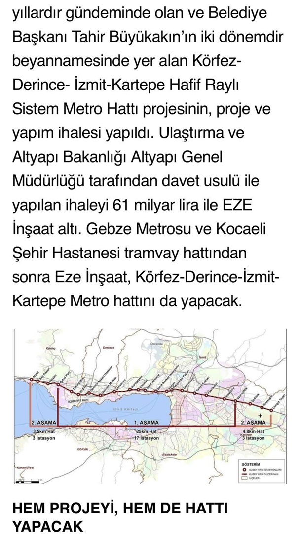 Gebze ve İzmit metrosunu yapan aynı firma: Met-Gün Grup - EZE İnşaat. Kocaeli Büyükşehir Belediyesi, İzmit Metrosunda nedense alelacele bir hali vardı. Aynı anda her yeri kazacağız ve 2028’de bitireceğiz deyip durdular.