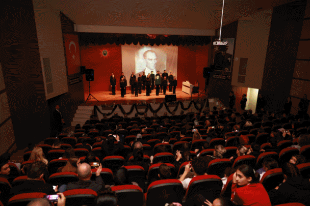 10 Kasım Atatürk’ü Anma Günü kapsamında düzenlenen tören çelenk sunumunun ardından, Sabancı Ortakları ve Çalışanları İlkokulu Konferans Salonu’nda gerçekleştirilen programlarla devam etti. Protokol mensupları ve ilçe halkının yoğun katılım sağladığı anma etkinliğinde Dumlupınar Ortaokulu öğrencilerinin hazırladığı gösteriler, konuklar tarafından büyük bir dikkatle takip edildi. Saygı duruşu ve İstiklal Marşı’nın okunmasıyla başlayan programda günün anlam ve önemine vurgu yapan konuşmalar gerçekleşti. Derince genelinde düzenlenen ‘10 Kasım Atatürk’ü Anlamak’ konulu resim, şiir ve kompozisyon yarışmalarında dereceye giren öğrencilere protokol tarafından plaketleri ve hediyeleri takdim edilirken anma etkinlikleri, öğrencilerin anlamlı güne özel olarak hazırladığı tiyatro, video gösterimleri ve resim sergisinin gezilmesi ile son buldu.