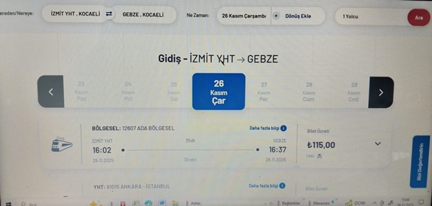 Diğer duraklar arası tren bilet fiyatlar şöyle: