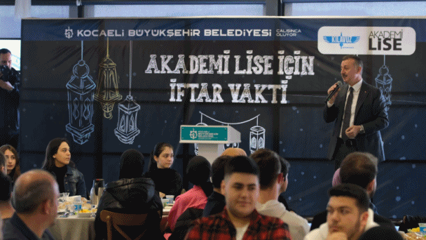 Eğitim, 15 Nisan 2023 11:53Kocaeli Büyükşehir Belediye Başkanı Doç. Dr. Tahir Büyükakın, iftar öncesi Akademi Lise 12. sınıf ve mezun öğrenciler ile buluştu