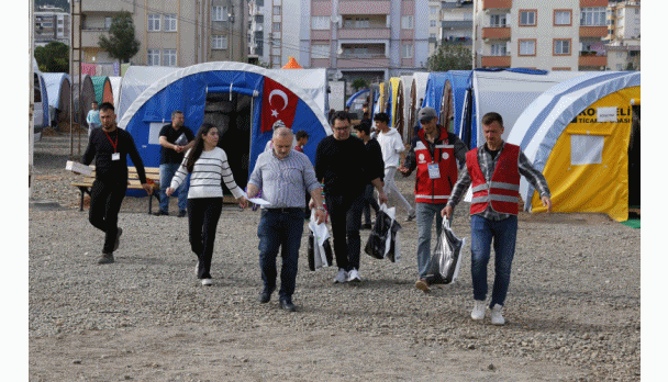 KOTO Başkanı Necmi Bulut, Meclis Başkanı Hüseyin Gezer, Yönetim Kurulu Başkan Yardımcıları Volkan Yılmaz, Murat Barış, Yönetim Kurulu Sayman Üyesi Mikail Kayacı, Meclis Başkan Yardımcısı İbrahim İkiz, Katip Üye Kübra Öter, Yönetim Kurulu Üyeleri; Yusuf Ziya Uludüz, Abdurrahman Kaya, Meclis Üyeleri; Emine Nilay Özkan, Handan Kümeli, 10. Meslek Komitesi Başkanı Halil İbrahim Yalnız, 23. Meslek Komitesi Başkan Yardımcısı Melike Andız ve Kocaeli Kadın Girişimciler Kurulu KOTO İcra Kurulu Üyesi Nurhayat Güldüren’in yer aldığı heyet; Oda yönetimi, meclisi, komite üyeleri ve üyelerin bağışlarıyla Kahramanmaraş’ın Onikişubat ilçesi Tavşantepe Mahallesi’nde kurulan çadırkente ziyaret gerçekleştirdi.