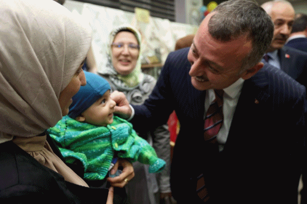 KO-MEK’te vefanın ve yardımlaşmanın simgesi olan KO-MEK bohçası yakında düğünü olacak olan kursiyere açılışa katılan protokol tarafından takdim edildi. Konuşmaların ardından açılışa katılan protokol ve çocuklar hep birlikte açılış kurdelesini kesti ve sergi vatandaşların ziyaretine açıldı. Sergi alanını gezerek tüm ürünleri inceleyen Başkan Büyükakın emeklerinden dolayı kursiyerlere teşekkür etti.