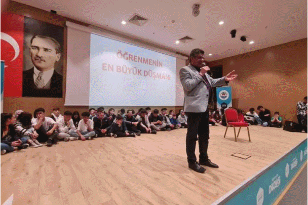 Kapaklıkaya, son bölümde ise aile içinde çocuklara gereken önemin verilmesi gerektiğini, çocuklara nasıl davranılması ve öğrencilerin ders çalışırken nelere dikkat etmeleri gerektiği konuları ile sunumuna devam etti. Konferans sonunda Dilovası Belediye Başkanı Hamza Şayir, tarafından Alişan Kapaklıkaya’ya hediye takdim edildi.