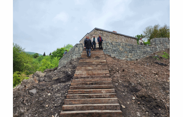 Taş istinat duvarları ve travers merdivenlerin tamamlanması sonrası, çevre düzenlemesiyle; tarihî hamamın çevresi de estetik bir görünüme kavuşturulacak.