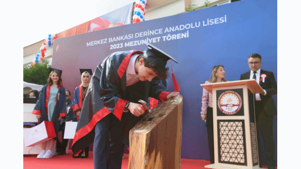 2022-2023 Eğitim-Öğretim dönemi sona ererken okullarda mezuniyet törenleri yapılıyor. Yenikent Mahallesi’nde eğitim veren Merkez Bankası Derince Anadolu Lisesi’nin 12. sınıflar için düzenlediği mezuniyet programı okul bahçesinde gerçekleşti. Mezuniyet programı Derince Belediye Başkanı Zeki Aygün, Merkez Bankası İletişim ve Dış İlişkiler Genel Müdürlüğü İletişim Planlama ve Yönetimi Müdürü Emel Demirgören Şahin, İlçe Milli Eğitim Şube Müdürleri İbrahim Yıldırım ve Yakup Yaman, Yenikent Mahalle Muhtarı Erol Küçük, Merkez Bankası Derince Anadolu Lisesi Müdürü Erdal Bozkurt, müdür yardımcıları, öğretmenler, öğrenciler ve öğrencilerin ailelerinin katılımıyla gerçekleşti. 65 öğrencinin mezuniyet coşkusu yaşadığı Merkez Bankası Derince Anadolu Lisesi’ndeki okul birinciliğine Arda Hepgüler ulaşırken, Yiğit Ahmet Talha Murat ikinci ve Enfal Kaya ise üçüncü oldu.