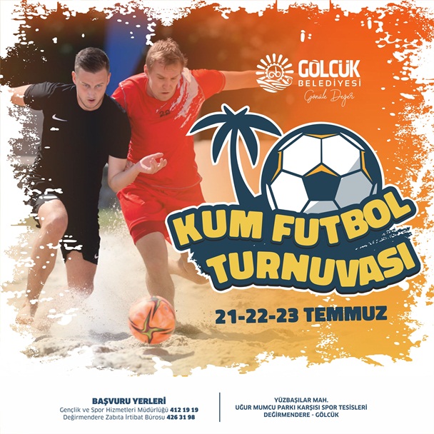 Spor, 17 Temmuz 2023 11:21Gölcük Belediyesi'nin Değirmendere yaz etkinlikleri kapsamında her yıl düzenlediği Kum Futbol Turnuvası 21 Temmuz Cuma günü başlıyor.