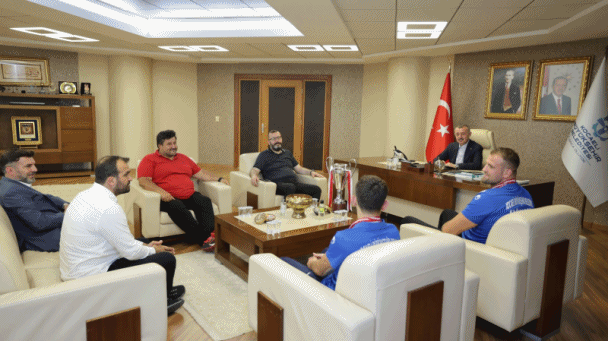 Kocaeli Büyükşehir Belediye Başkanı Tahir Büyükakın, 662. Tarihi Kırkpınar Yağlı Güreşleri’nde başarı elde eden Kağıtspor’un başarılı pehlivanlarını makamında ağırladı. Kırkpınar’da başpehlivanlık boyunda üçüncü olan Büyükşehir Kağıtsporlu Hüseyin Gümüşalan ile teşvik 2 boyunda ikinci olan Mustafa Ekin’i misafir eden Başkan Büyükakın, “Sizleri gönülden tebrik ediyorum.