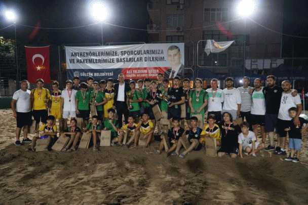 Gölcük’te yaklaşık 25 yıldır geleneksel olarak düzenlenen Kum Futbol Turnuvası nefes kesen final müsabakaları ile sona erdi. Değirmendere Yüzbaşılar Sahili'ne renk ve heyecan katan turnuvada; büyüklerde 32 takım, küçüklerde ise 13 takımda toplam 354 sporcu mücadele etti. Gençlerin büyük ilgi gösterdiği Kum Futbolu Turnuvası finallerinde büyüklerde Azat İnşaat, küçüklerde ise Gölcük Gençlerbirliği Spor şampiyon oldu. Kupalarını Gölcük Belediye Başkanı Ali Yıldırım Sezer’in elinden alan şampiyon takımlar büyük sevinç yaşadılar.