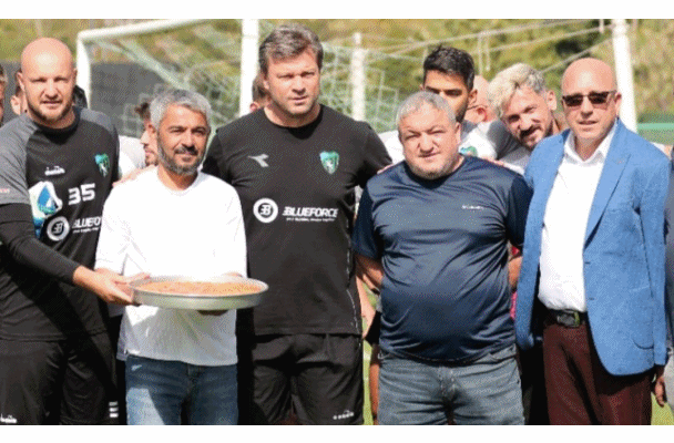 Son üç haftada alınan galibiyetlerle zirvede iddialı bir noktaya gelen Yeşil Siyahlı takımı ziyaret eden taraftarlar, kulüp başkanı Engin Koyun, teknik direktör Ertuğrul Sağlam ve takım futbolcularına tatlı ikramında bulundu.