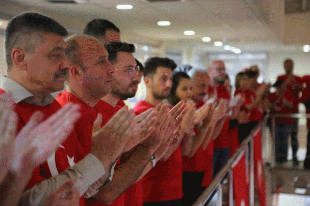 Belediye Başkanı Ali Yıldırım Sezer'in öncülüğünde, belediye personeli coşku içerisinde İstiklal Marşı'nı okuyarak, marşlar eşliğinde Cumhuriyetin 100. yılını kutladılar. Etkinlik kapsamında tüm belediye personeline Türk Bayraklı tişört dağıtıldı. Son mesai gününde tişörtlerini gururla giyen belediye personeli, bayraklarla süslenen belediye binasında bol bol hatıra fotoğrafları çektirerek bu anlamlı günü ölümsüzleştirdiler.