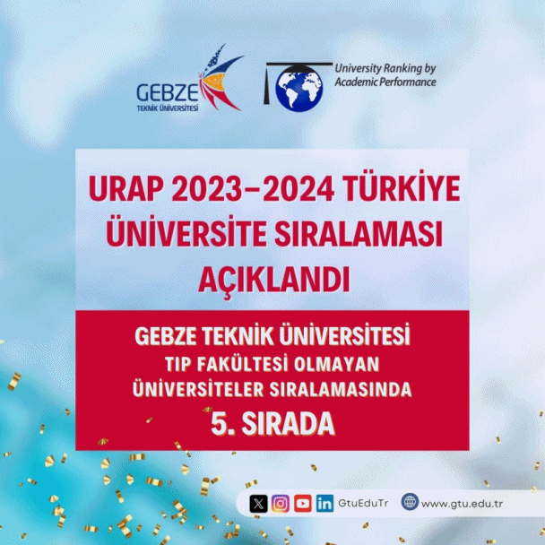 URAP (University Ranking by Academic Performance) tarafından yapılan 2023-2024 Türkiye Sıralaması açıklandı. Orta Doğu Teknik Üniversitesi Enformatik Enstitüsü bünyesinde kurulan ve yükseköğretim kurumlarını çeşitli akademik ölçütlere göre değerlendiren kuruluşun Devlet Üniversiteleri Sıralamasında Gebze Teknik Üniversitesi (GTÜ) 8., yine aynı sıralamada Tıp Fakültesi Olmayan Üniversiteler Sıralamasında 5. sırada yer aldı.