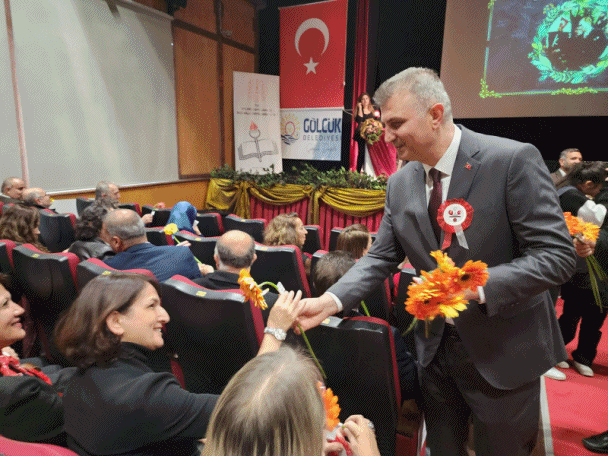 Başkan Sezer daha sonra; İlçe Milli Eğitim Müdürlüğü ve Gölcük Anadolu Kalkınma Vakfı Mesleki ve Teknik Anadolu Lisesi öğretmen ve öğrencileri tarafından başarıyla hazırlanan programa katıldı. Gölcük Kaymakamı Müfit Gültekin’in de katıldığı programda Başkan Sezer, salondaki öğretmenlere çiçek takdim ederek Öğretmenler Günü’nü kutladı.