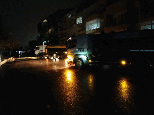 Gündem, 27 Kasım 2023 14:11Bölgemizi de içine alan turuncu kodlu uyarı nedeniyle teyakkuz halinde tam kadro sahada olan İSU Genel Müdürlüğü ekipleri, cumartesi günü ilk saatlerden itibaren şehrimizi etkisi altına alan yoğun yağış ve fırtınanın sebep olduğu olumsuzlukların etkisini azaltmak ve bertaraf etmek için sahada koordineli bir şekilde çalışarak deniz taşması sonucu oluşan su baskınlarına anında müdahale etti.