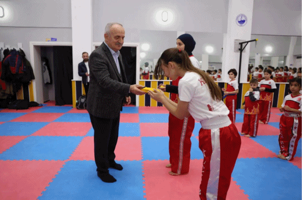 Derince Belediye Başkanı Zeki Aygün ve Derince Belediye Başkan Yardımcısı Kemal Bayraktar’ın katılarak takip ettiği kick boks kuşak töreni sonunda 60 sporcu bir üst kuşağa terfi etmenin mutluluğunu yaşadı. Başarılı sporcuları tek tek tebrik ederek, kuşak, sertifika ve ödüllerini takdim eden Başkan Aygün, “Yeni kuşaklarını takdim ettiğimiz kıymetli evlatlarımızı, onları yetiştiren ailelerini ve antrenörlerimizi gönülden kutluyorum” dedi.