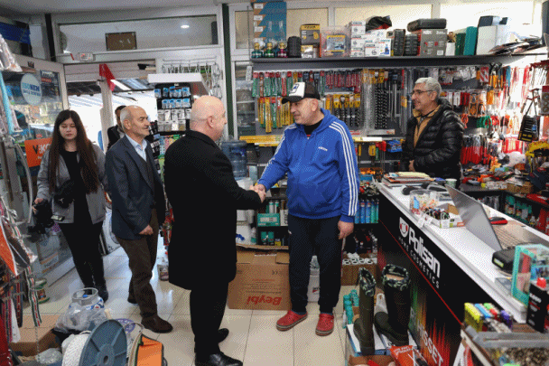 Gece gündüz demeden vatandaşlarla iç içe olmaya özen gösteren ve makamda olmak yerine her fırsatta vatandaşların arasında olan Darıca Belediye Başkanı Muzaffer Bıyık, Bayramoğlu Mahallesi’nde esnaflarla buluştu. AK Parti Darıca İlçe Başkanı Köksal Şakar ile birlikte Fatih Sultan Mehmet Caddesi üzerindeki esnafları tek tek ziyaret eden Başkan Muzaffer Bıyık, esnaflar tarafından oldukça sıcak ve samimi bir şekilde karşılandı. Kendisine gösterdikleri yakınlık için esnafa teşekkür eden Başkan Muzaffer Bıyık, her fırsatta bir araya gelmeye devam edeceklerini söyledi.