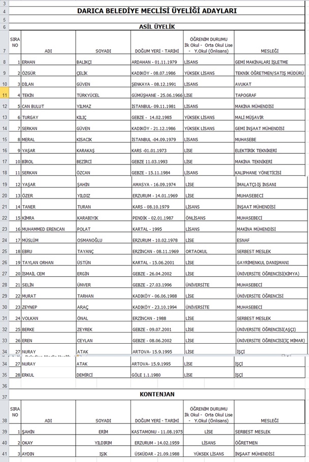 İşte CHP’nin Darıca meclis adayları