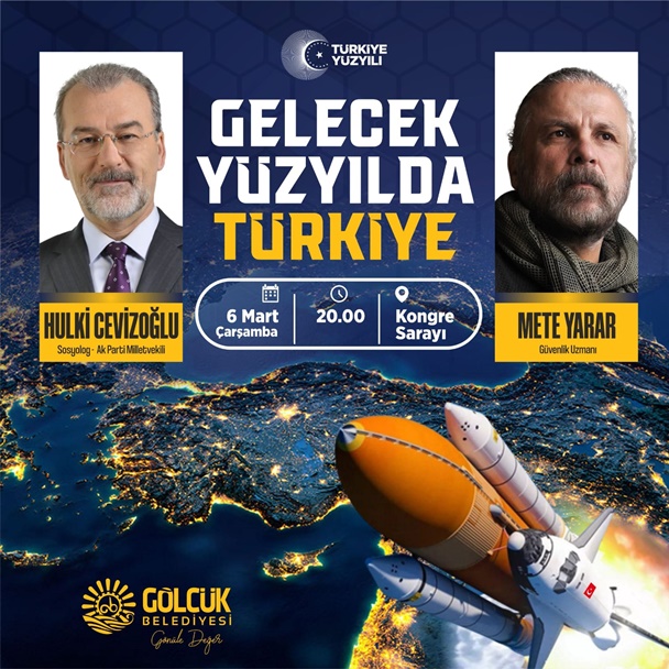 Gölcük Belediye Başkanı Ali Yıldırım Sezer, “Türkiye; kamu ve özel sektörüyle, kara, deniz ve hava araçları, ağır ve hafif silahlar, uzay sistemleri, radar ve elektronik harp sistemleri alanlarında ürettiği yüzlerce yüksek teknolojiye sahip ürünle, artık dünya ölçeğinde savunma sanayisinde adından söz ettiriyor. Sosyolog, TV Programcısı ve AK Parti İstanbul Milletvekili Doç.Dr. Hulki Cevizoğlu Güvenlik Uzmanı, Yazar Mete Yarar'ın konuşmacı olarak katılacağı, ‘Gelecek Yüzyılda Türkiye’ konulu paneli, tüm hemşehrilerimiz davetlidir” dedi.