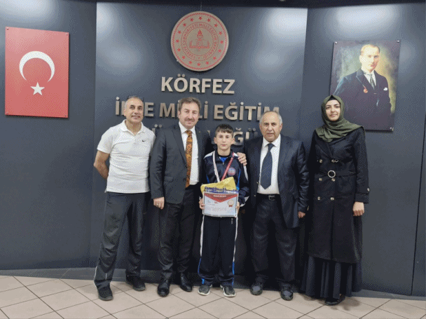 Türkiye 1.’si olan Berat Can Kaya, okul müdürü Turgut Kızılkaya ve ailesi ile birlikte Körfez Milli Eğitim Müdürü Sergülen Kurt’u ziyaret ederek; madalyasını takdim etti. Milli Eğitim Müdürü Segülen Kurt ise, “İlimtepe Ortaokulu öğrencilerimizden 14-15 Mayıs tarihlerinde Mersin'de yapılan Okul Sporları "Atletizm Küçük Erkekler Ferdi Fırlatma Topu" kategorisinde Türkiye 1.si olarak bizleri gururlandıran şampiyon Berat Can KAYA'yı kurumumuzda ağırladık. Öğrencimizi tebrik ediyor, başarılarının devamını diliyorum. Öğrencimizin başarısında emeği geçen okul idaresine beden eğitimi öğretmenimize teşekkür ediyorum.” dedi