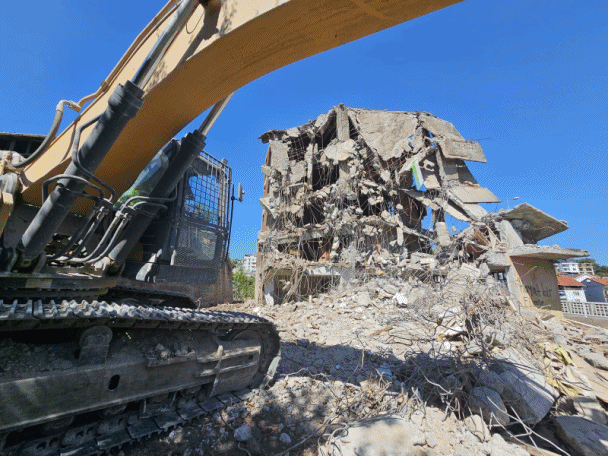 Gölcük Belediyesi ilçe genelinde onarım ve güçlendirmesi yapılmayan orta hasarlı binalar ile vatandaşların can güvenliğini tehdit eden, sosyal riskler oluşturan metruk binaların yıkımına devam ediyor. Çalışmalar kapsamında D 130 Karayoluna cephe, Kalyon Kapı Köprülü Kavşak yakınında bulunan, Donanma Mahallesi 159. Sokak No:6 adresindeki natamam binanın, performans analizi sonucuna göre yıkımı ve enkazının kaldırılması belediye ekipleri tarafından gerçekleştirildi.