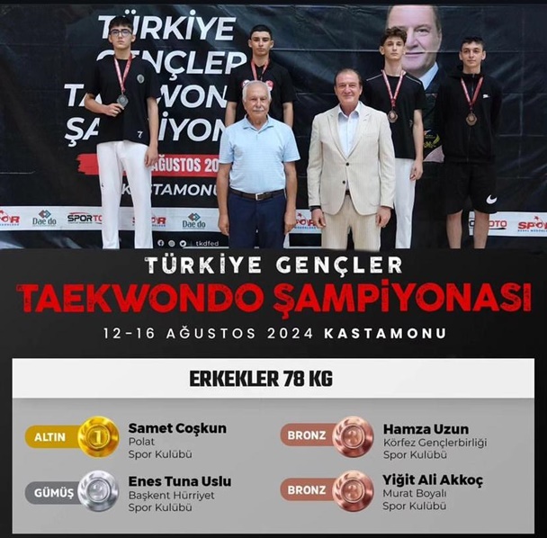Körfez Gençlerbirliği Spor Kulübü’nden yapılan açıklamada “Kastamonu’da yapılan Türkiye Gençler Taekwondo Şampiyonası’nda kulübümüz sporcusu Hamza Uzun zorlu rakiplerini yenerek madalya kürsüsünde yer almayı başardı. 78 kg’da Türkiye üçüncüsü olan sporcumuz Hamza Uzun bu başarısıyla önümüzdeki ay yapılacak Milli Takım seçmelerine davet edildi. Seçmeleri kazanan sporcular 1-4 Ekim’de Güney Kore’de yapılacak Dünya Taekwondo Şampiyonası’na katılma hakkı kazanacaklar. Ümit ederiz sporcumuz iyi bir performansla seçmeyi kazanarak Milli Takıma seçilir. Sporcumuzu kutlar, kulübümüze, Körfez’imize ve Kocaeli’mize yeni Türkiye derecemizin hayırlı olmasını dileriz. Desteklerini her zaman veren ve her platformda bunu bize hissettiren Körfez Belediye Başkanımız Sayın Şener Söğüt’e ayrıca çok teşekkür ederiz. Başkanımızdan aldığımız maddi ve manevi destekler ile sporcularımız başarılı olarak bizleri gururlandırıyorlar” ifadeleri kullanıldı.